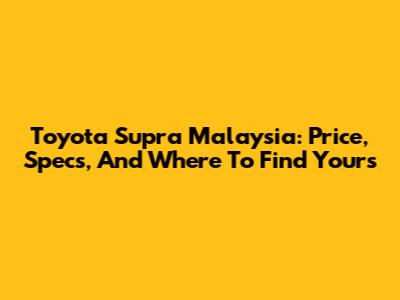 Toyota Supra Malaysia: Price, Specs, And Where To Find Yours