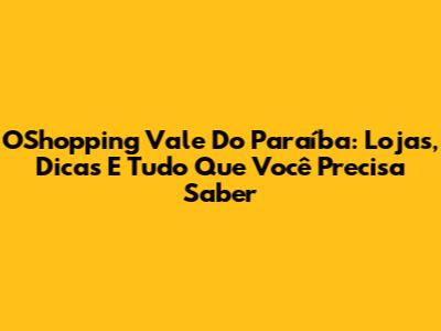 OShopping Vale Do Paraíba: Lojas, Dicas E Tudo Que Você Precisa Saber