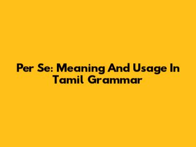 Per Se: Meaning And Usage In Tamil Grammar