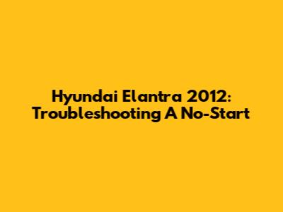 Hyundai Elantra 2012: Troubleshooting A No-Start