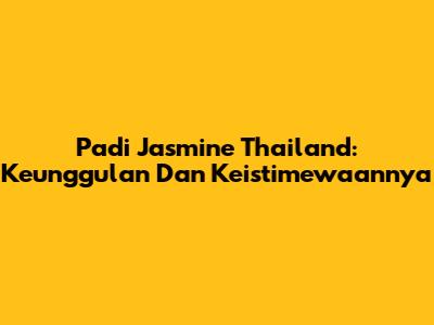 Padi Jasmine Thailand: Keunggulan Dan Keistimewaannya