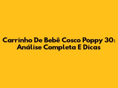 Carrinho De Bebê Cosco Poppy 30: Análise Completa E Dicas
