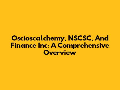 Oscioscalchemy, NSCSC, And Finance Inc: A Comprehensive Overview